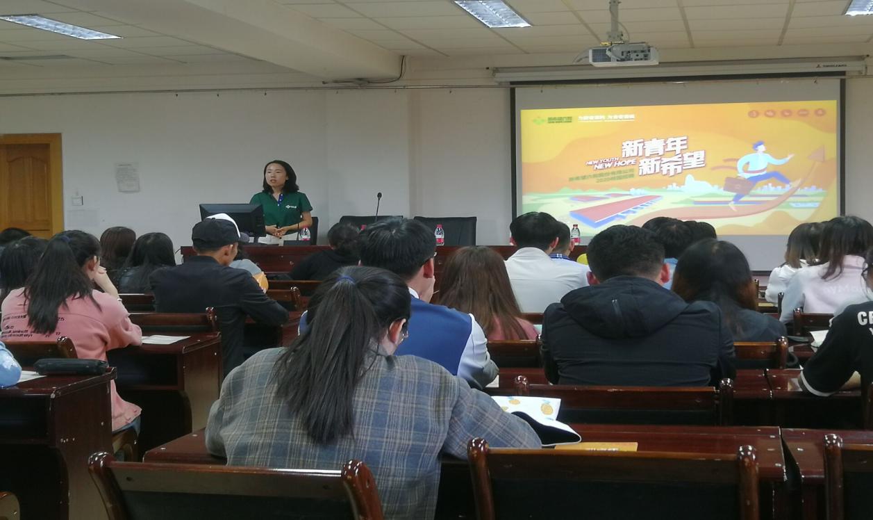 公司招聘组成员、陕西养殖基地生产主管、学院2018届动物医学专业毕业生张文远,分享了自己的入职经验和工作经历。他告诉同学们要找准自己的位置,通过不懈努力终会取得不错的成绩。现场还播放了公司河北养殖基地生产厂长、学院2012届动物科学专业毕业生王允强在工作场区录制的小视频,他热忱欢迎学弟学妹们来公司工作。