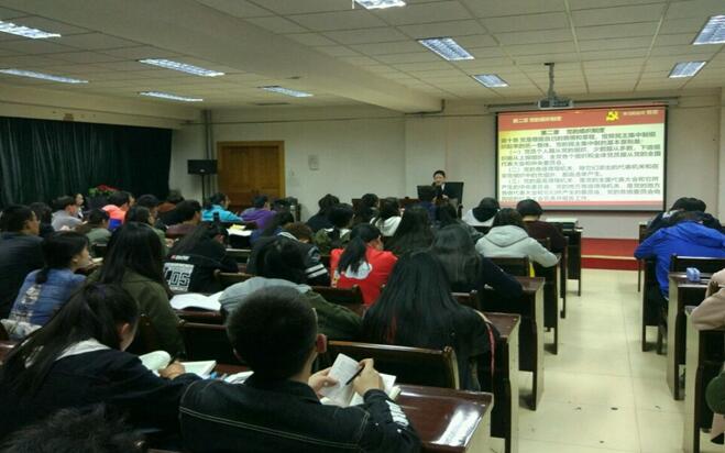 首先,王勇山老师做以“党章——每个党员都需时刻铭记”为主题的党课讲座,对学习党章的重要意义进行充分阐释。指出党章是党的总章程,集中体现了党的性质和宗旨、党的理论和路线方针政策及党的重要主张。党的十九大通过的《中国共产党章程(修正案)》,充分体现了党的十八大以来的理论创新、实践创新、制度创新成果,充分体现了党的十九大报告确立的重大理论观点和重大战略思想,对加强党的领导、推进全面从严治党提出了明确要求,特别是把习近平新时代中国特色社会主义思想确立为我们党必须长期坚持的指导思想,充分体现了全党的共同意志,对于用党的创新理论武装全党,保证党的团结统一和行动一致,更好推进党的事业和党的建设,具有十分重要的意义。