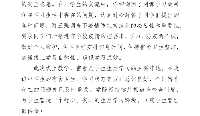 海棠书屋 深入学生宿舍关心关爱学生