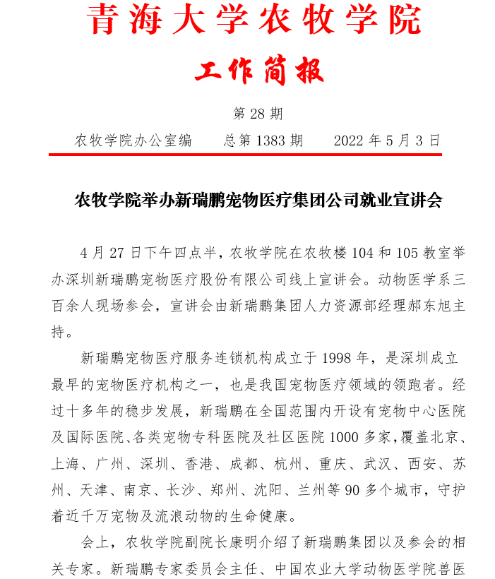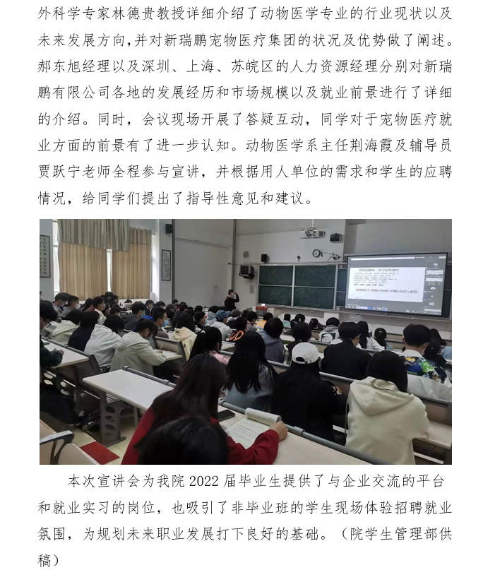 海棠书屋 举办新瑞鹏宠物医疗集团公司就业宣讲会