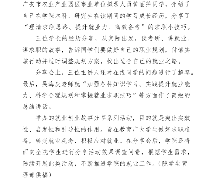 海棠书屋 举办第二期毕业生求职故事分享会